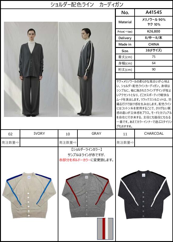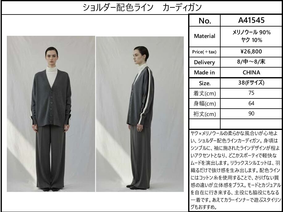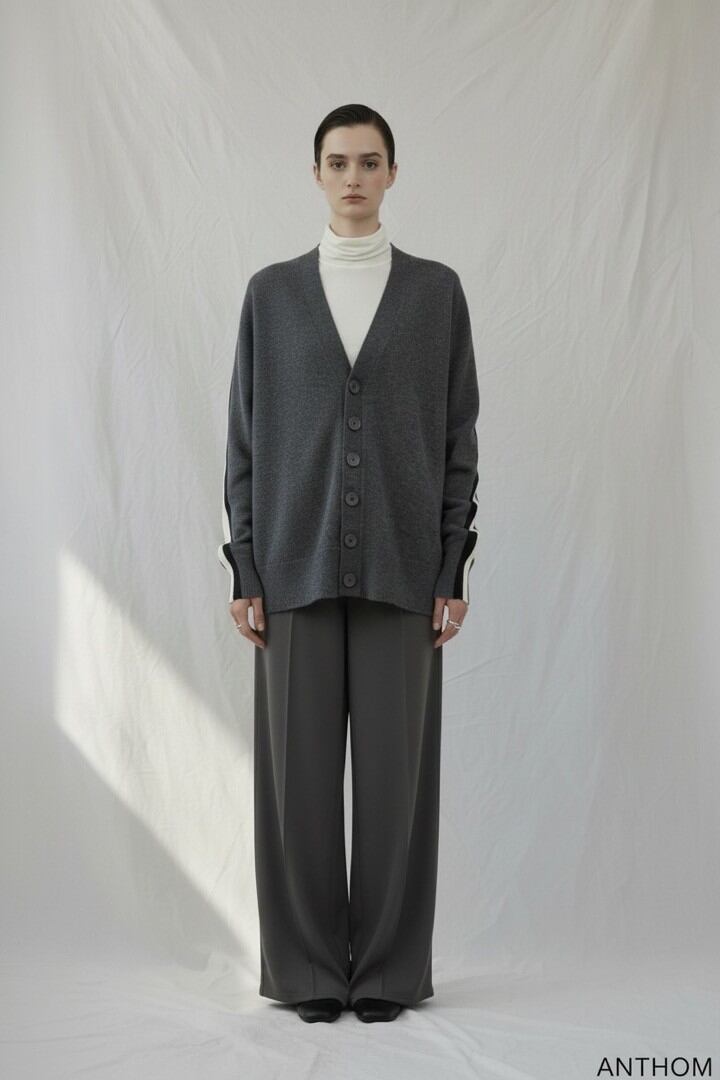 【ご予約品】《ANTHOM》ショルダー配⾊ライン カーディガン [A41545]【送料無料】 納期 8/中〜8/末
