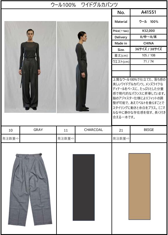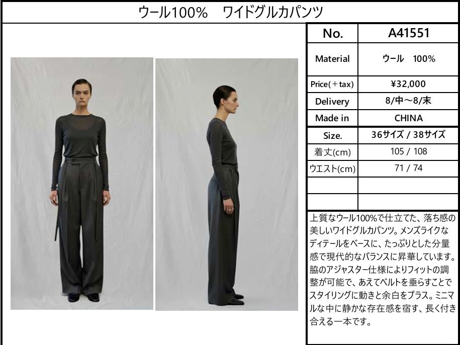 【ご予約品】《ANTHOM》ウール100% ワイドグルカパンツ [A41551]【送料無料】 納期 8/中〜8/末