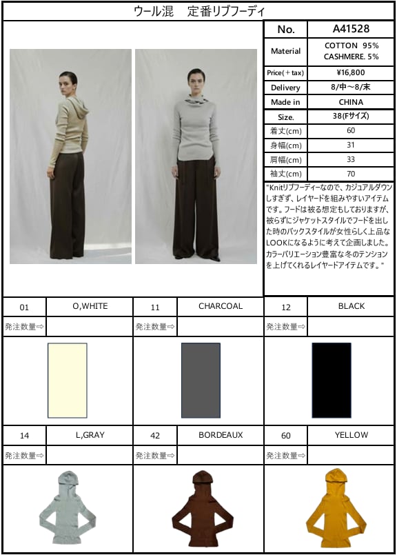 【ご予約品】《ANTHOM》ウール混 定番リブフーディ [A41528]【送料無料】 納期 8/中〜8/末