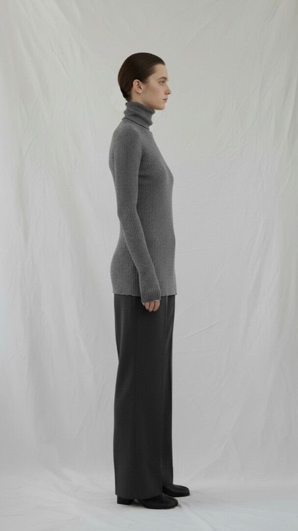 繊細なランダムリブが⽣み出す柔らかなフィット感と、脇線・袖下に施された配⾊リンキングが静かにアクセントを添えます。