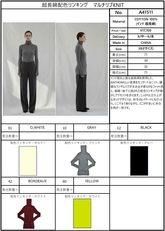 【ご予約品】《ANTHOM》超⻑綿配⾊リンキング マルチリブKNIT [A41511]【送料無料】 納期 8/中〜8/末