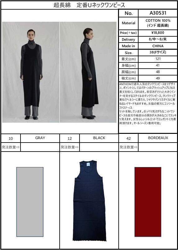 ANTHOMで通年⼈気のタンクワンピースをリデザイン。