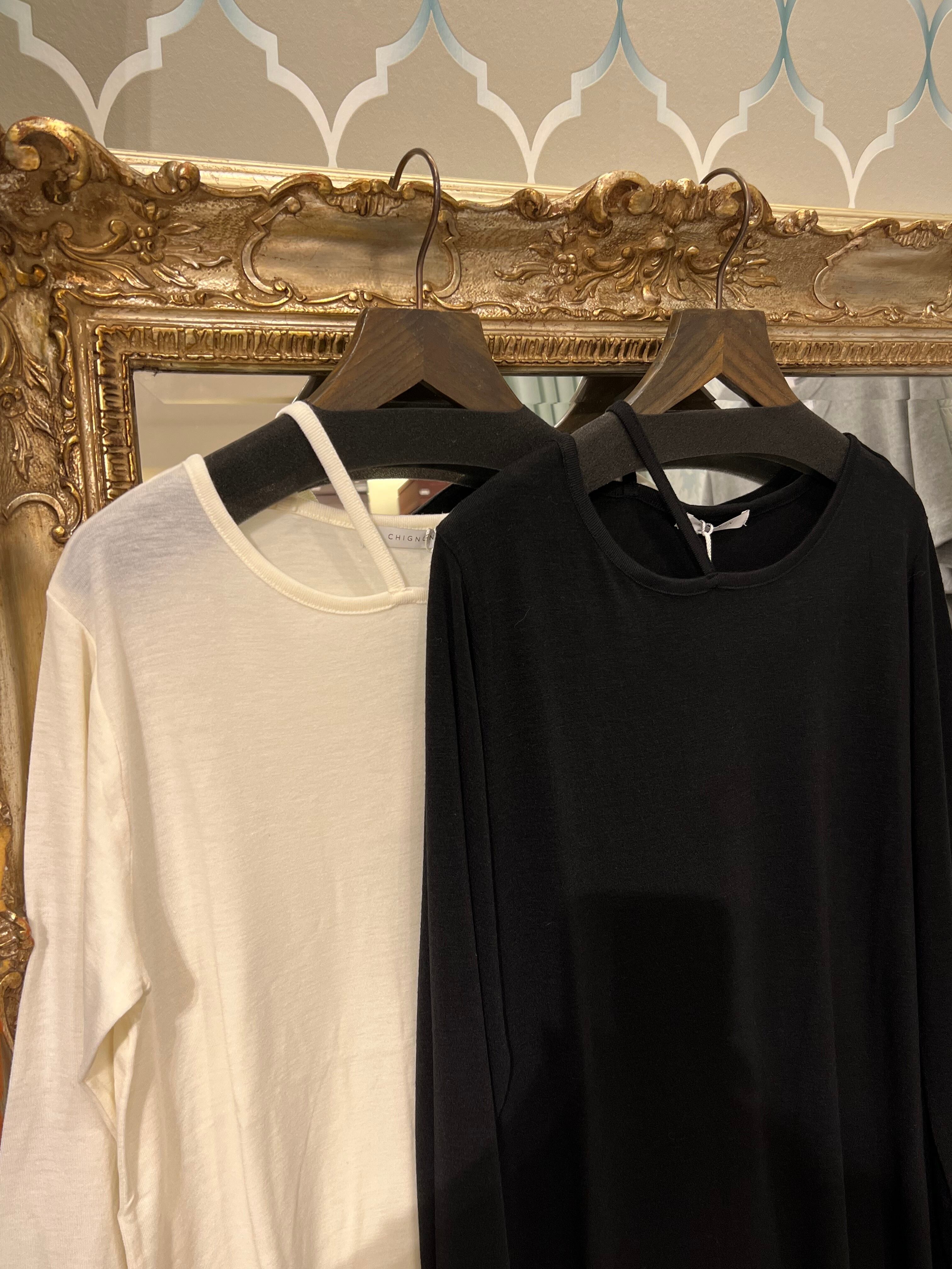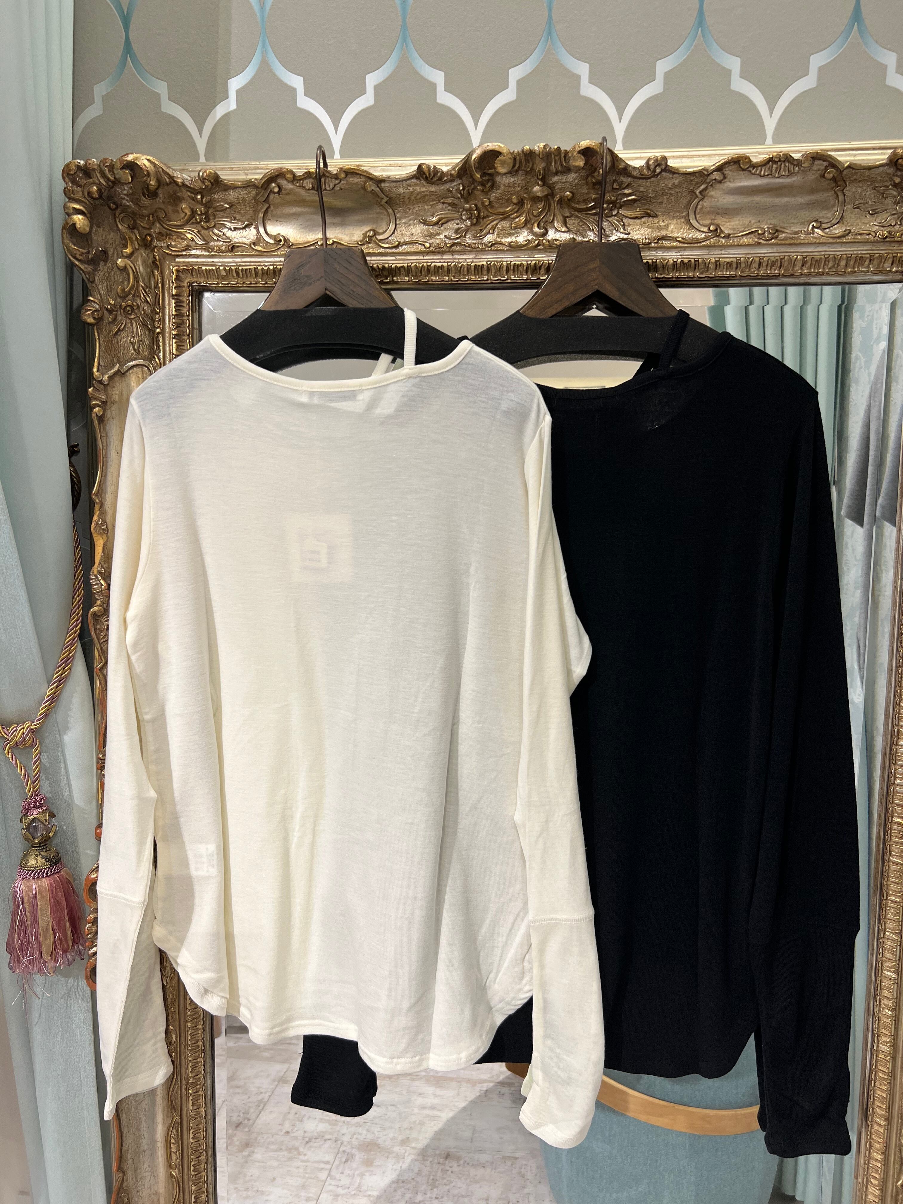 《chignon》ストラップロンT(オフホワイト)(黒)