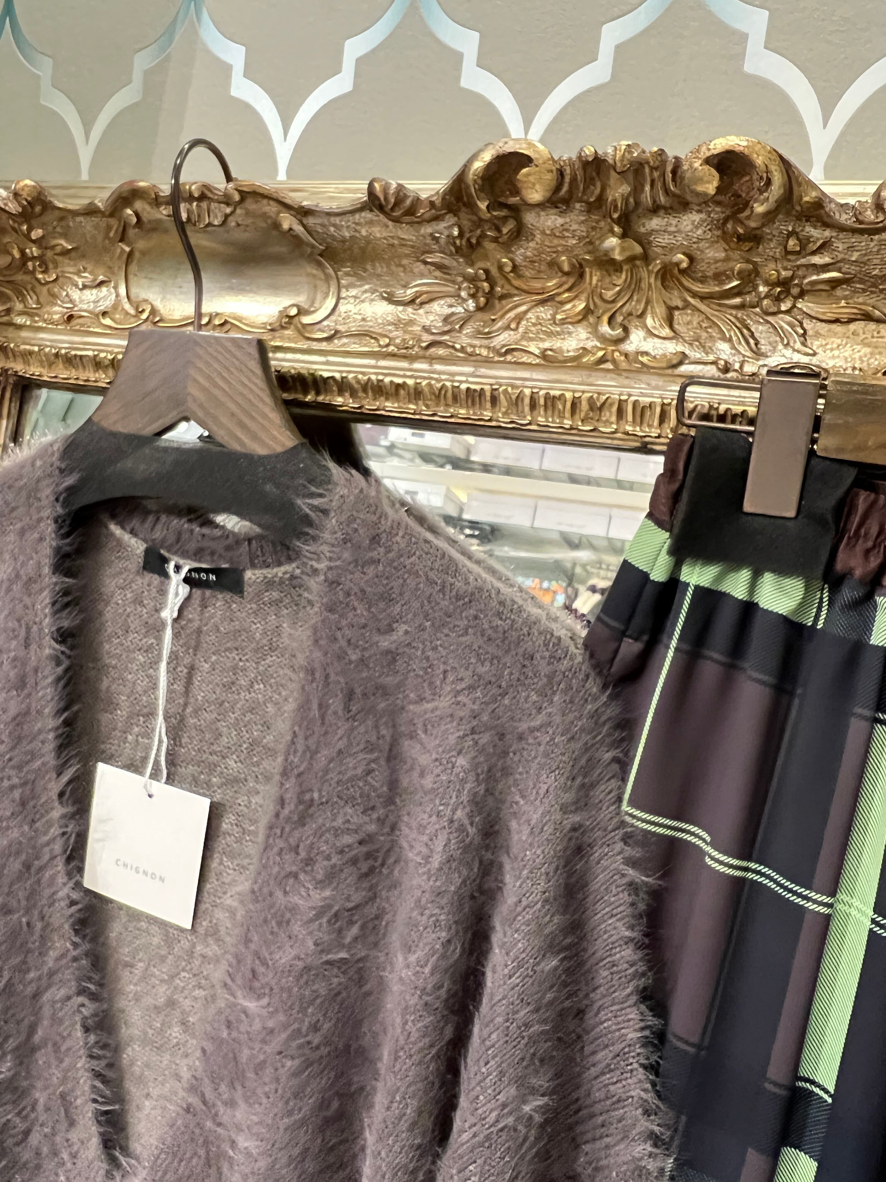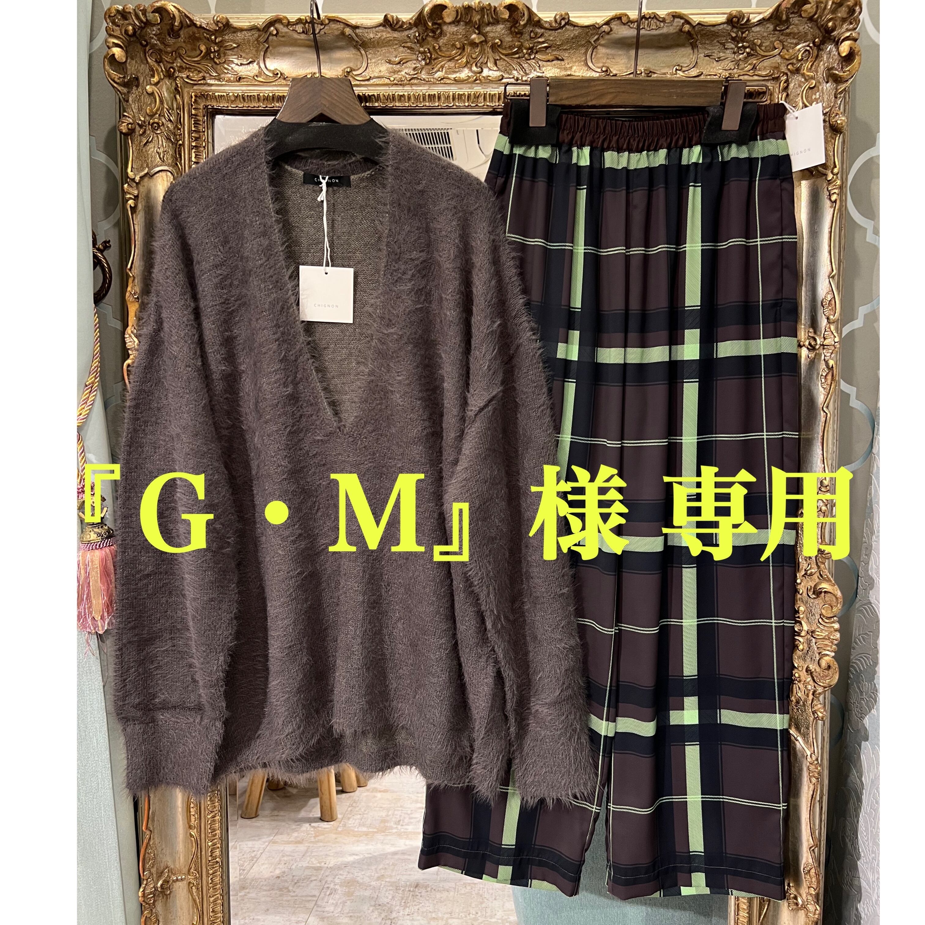 『G・M』様専用《chignon》フェザーニットVネックプルオーバー(グレー)、オリジナルチェックパンツ(ブラウン)F