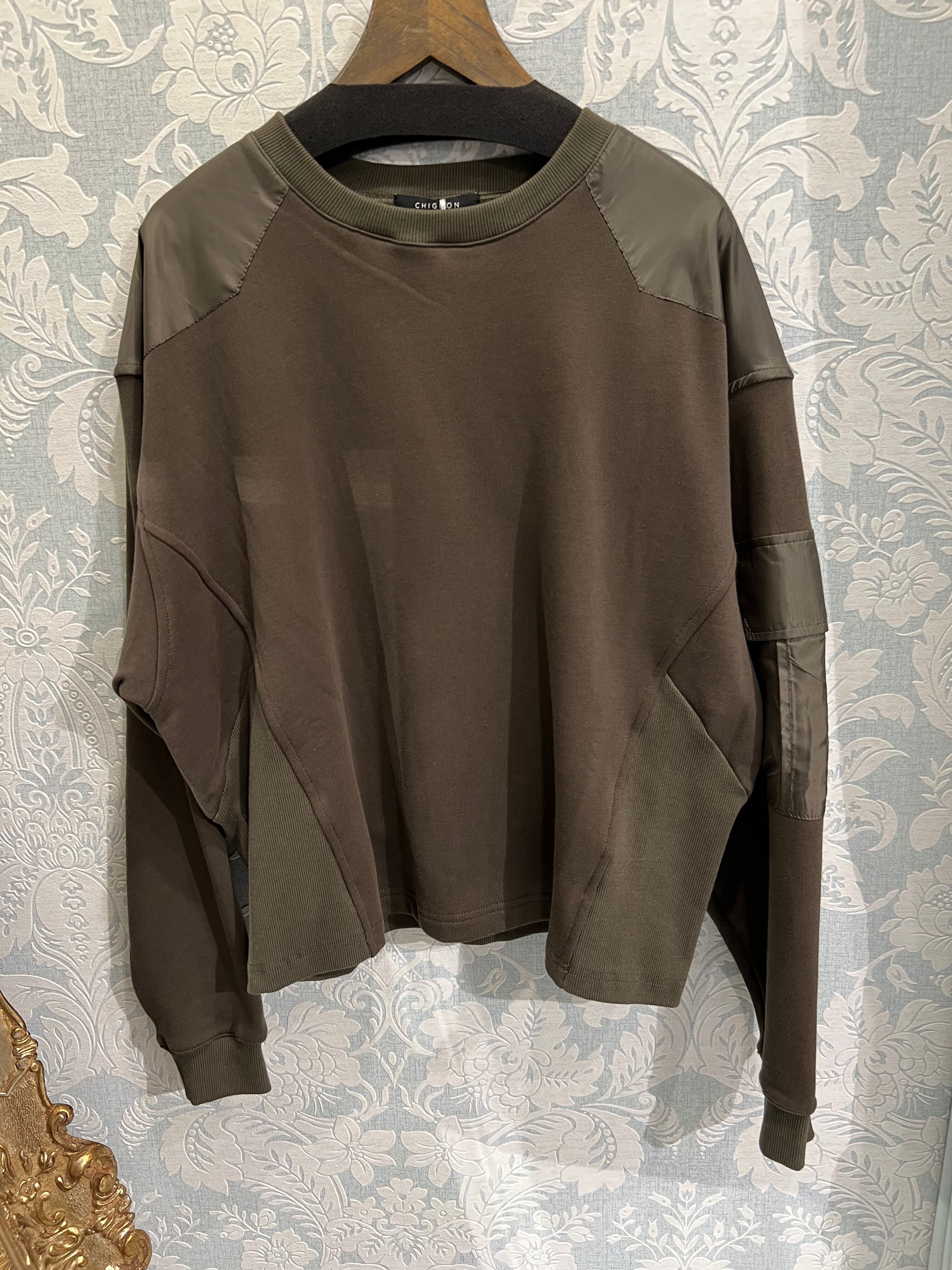 《chignon》ミリタリー裏毛プルオーバー(カーキ)