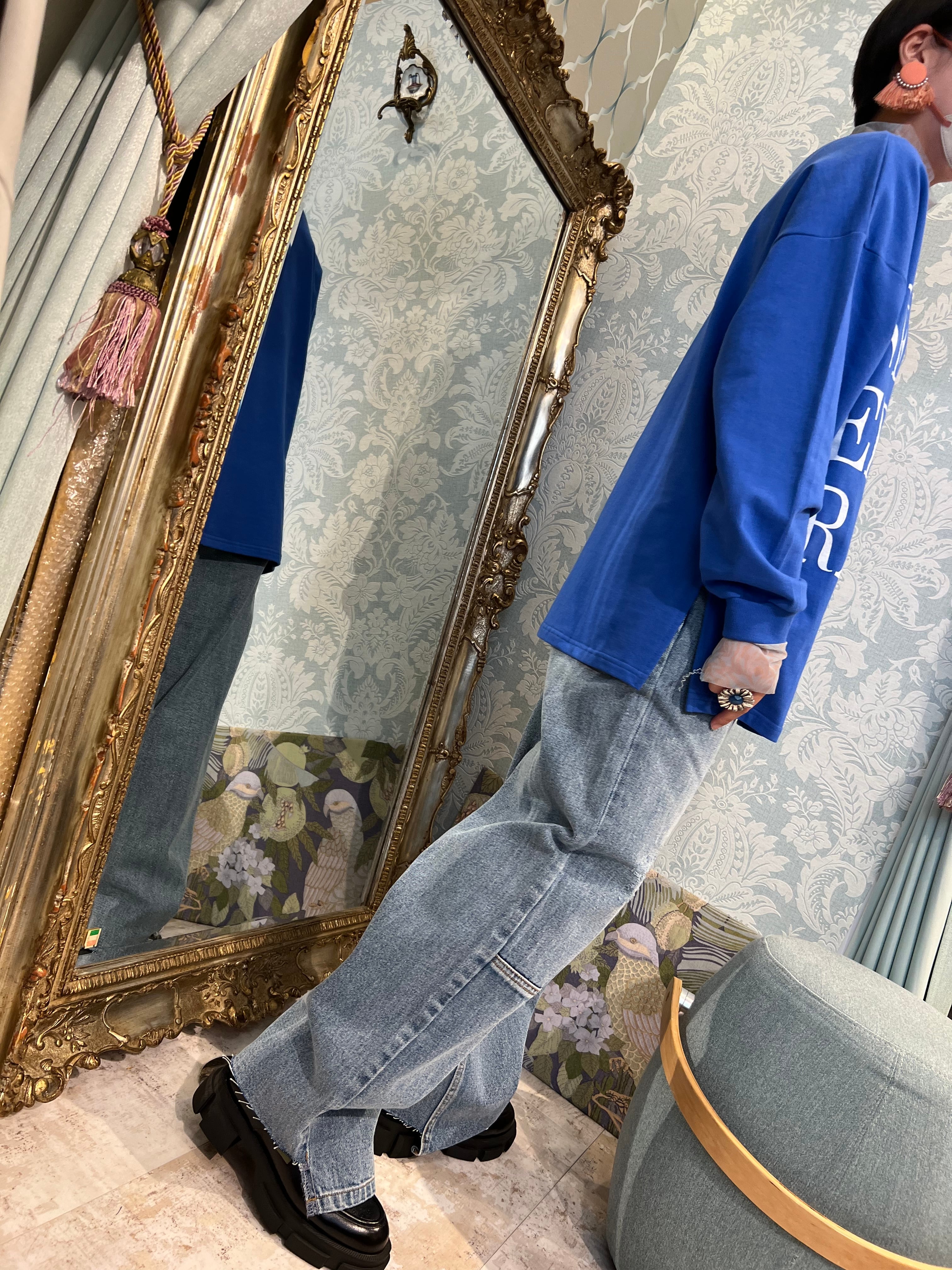 ◎ところどことに施したさりげないダメージ加工など、こだわりのつまった1枚です。