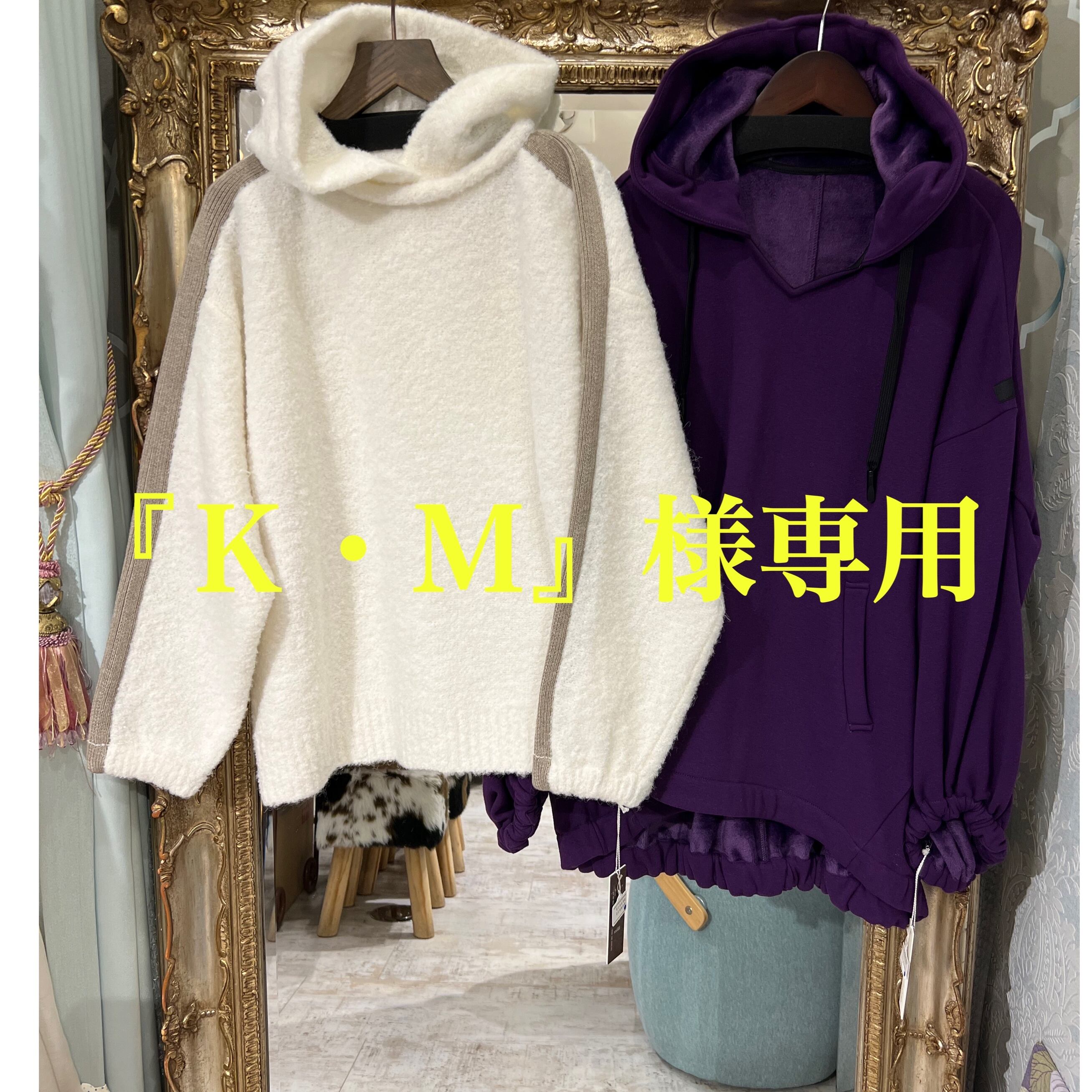 『K・M』様専用《ayane》ループ糸フーデットニット(オフ白)、ボンバープルオーバー(パープル)