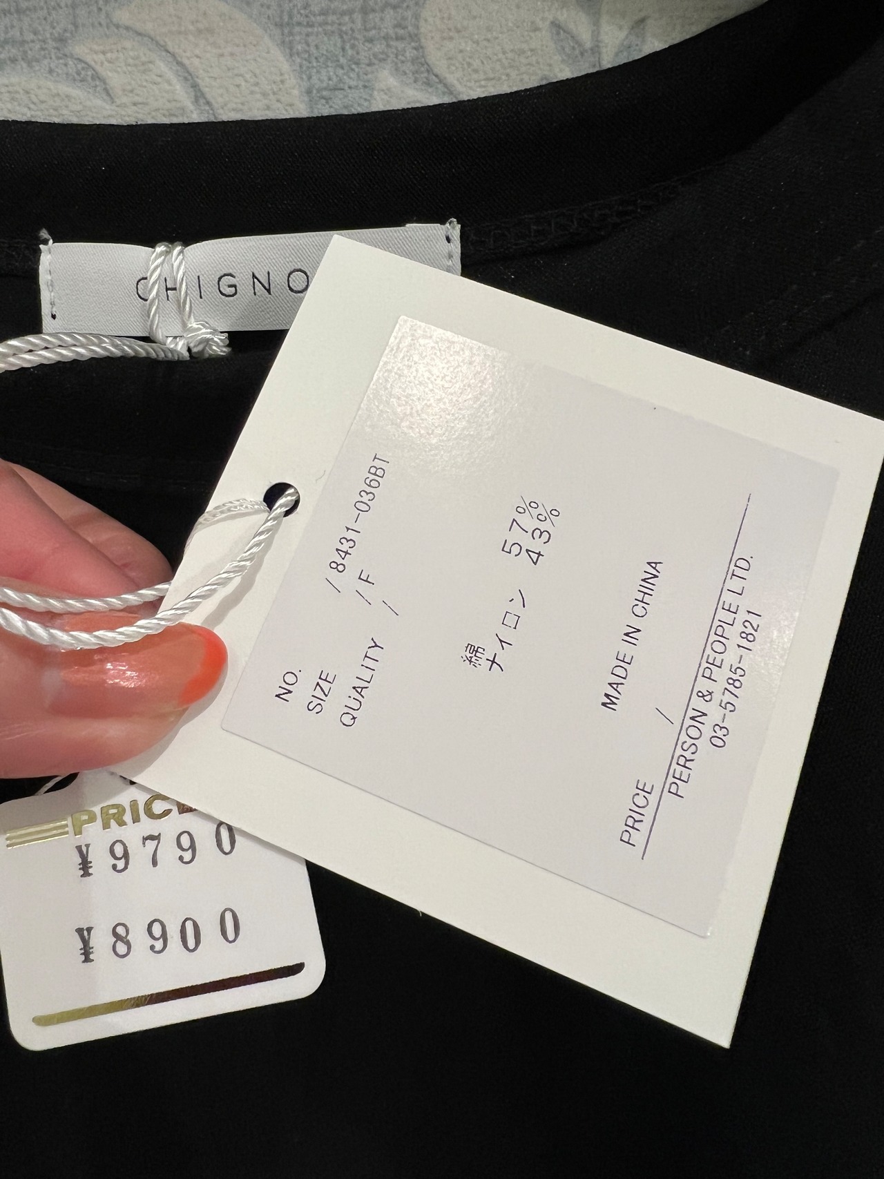 《chignon》シアーボクシーT 黒、 8,900円+税