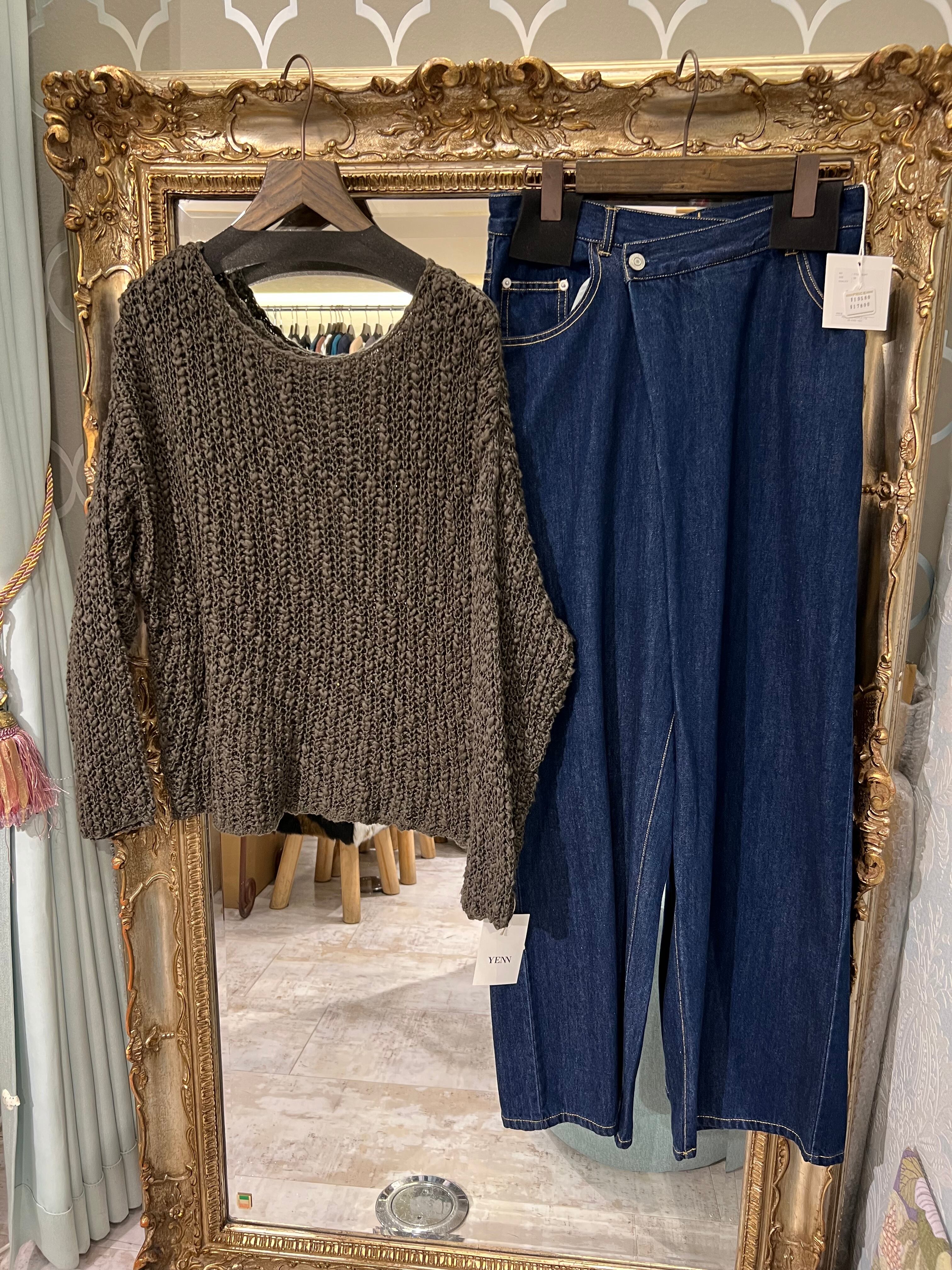 「Y・Y』様専用《ayane》ワークスプリングコート19:ネイビー、テンセルデニムフレアスカート19:ネイビー(38)《YENN》コットンスラブニット カーキ《chignon》ソフトデニムラップパンツBLU(38) 合計4点