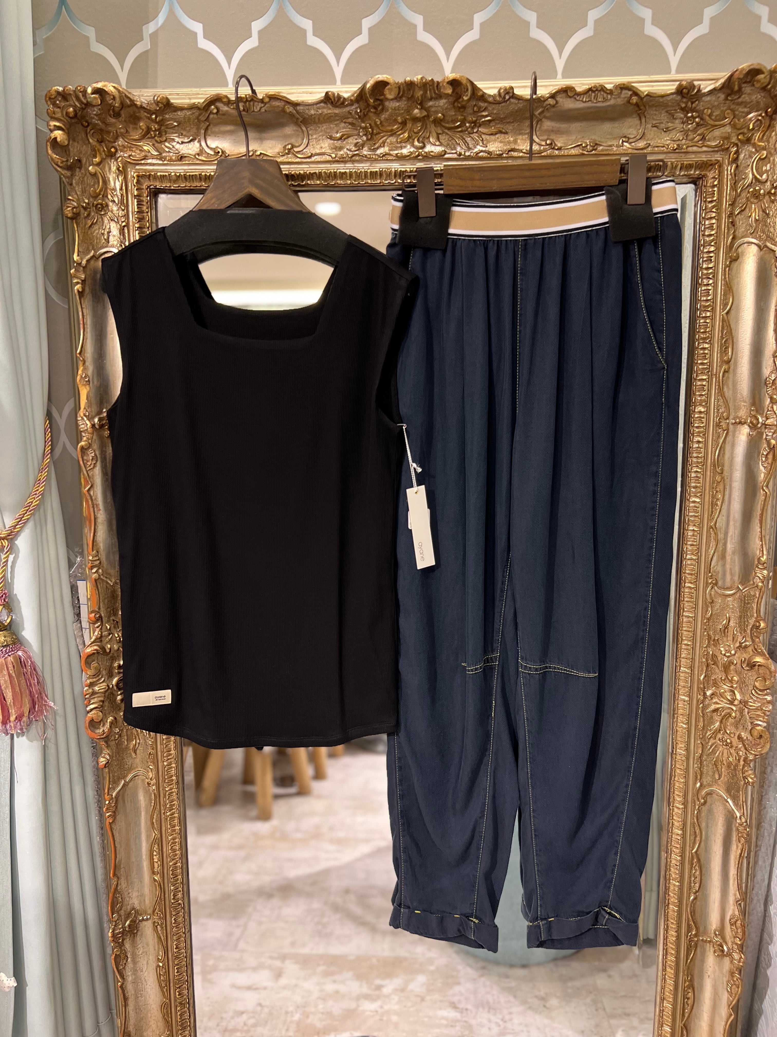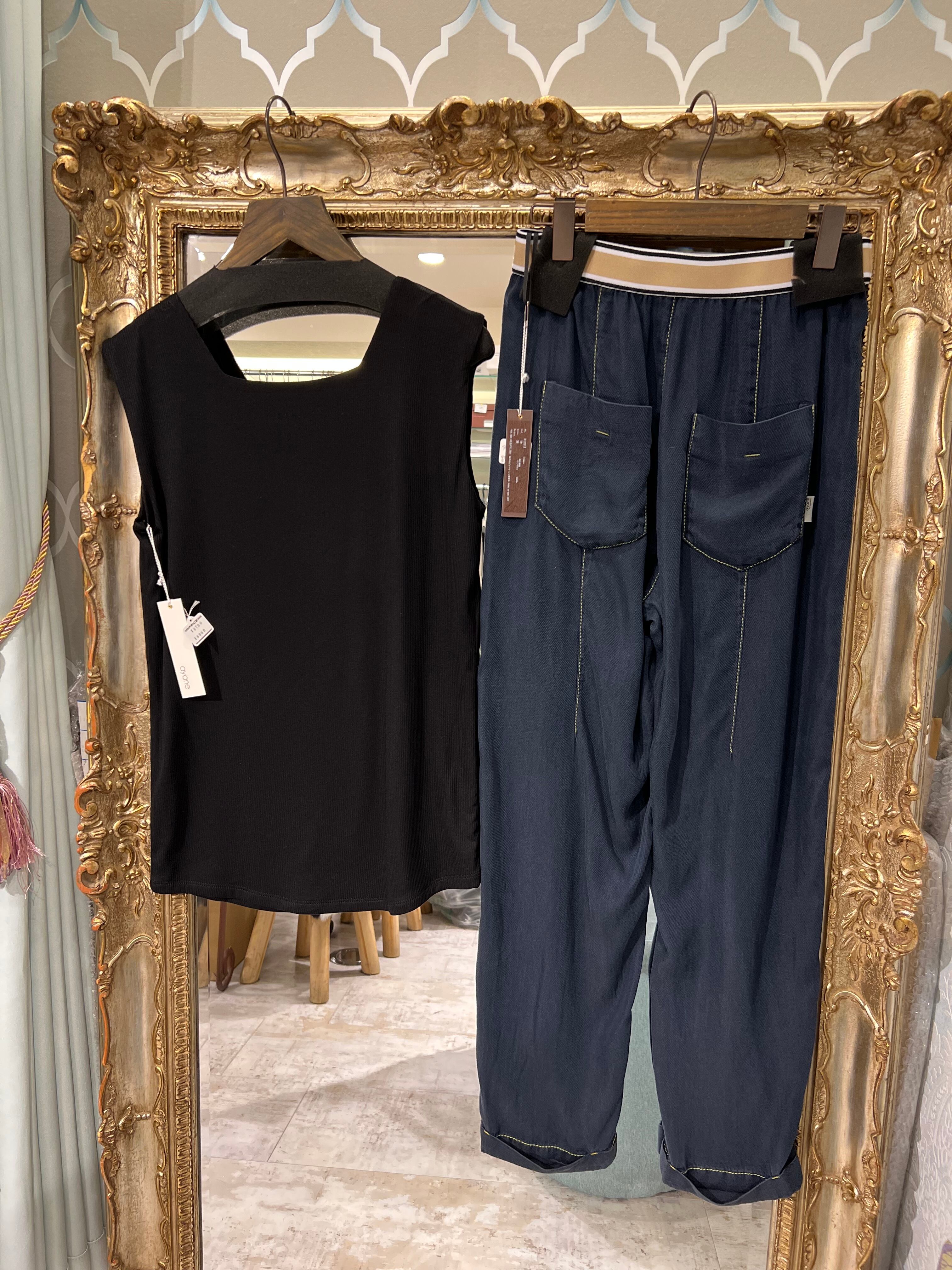 『N・S』様専用《ayane》スクエアリブタンクトップ黒、テンセルテーパードパンツ19:ネイビー(38) 合計2点