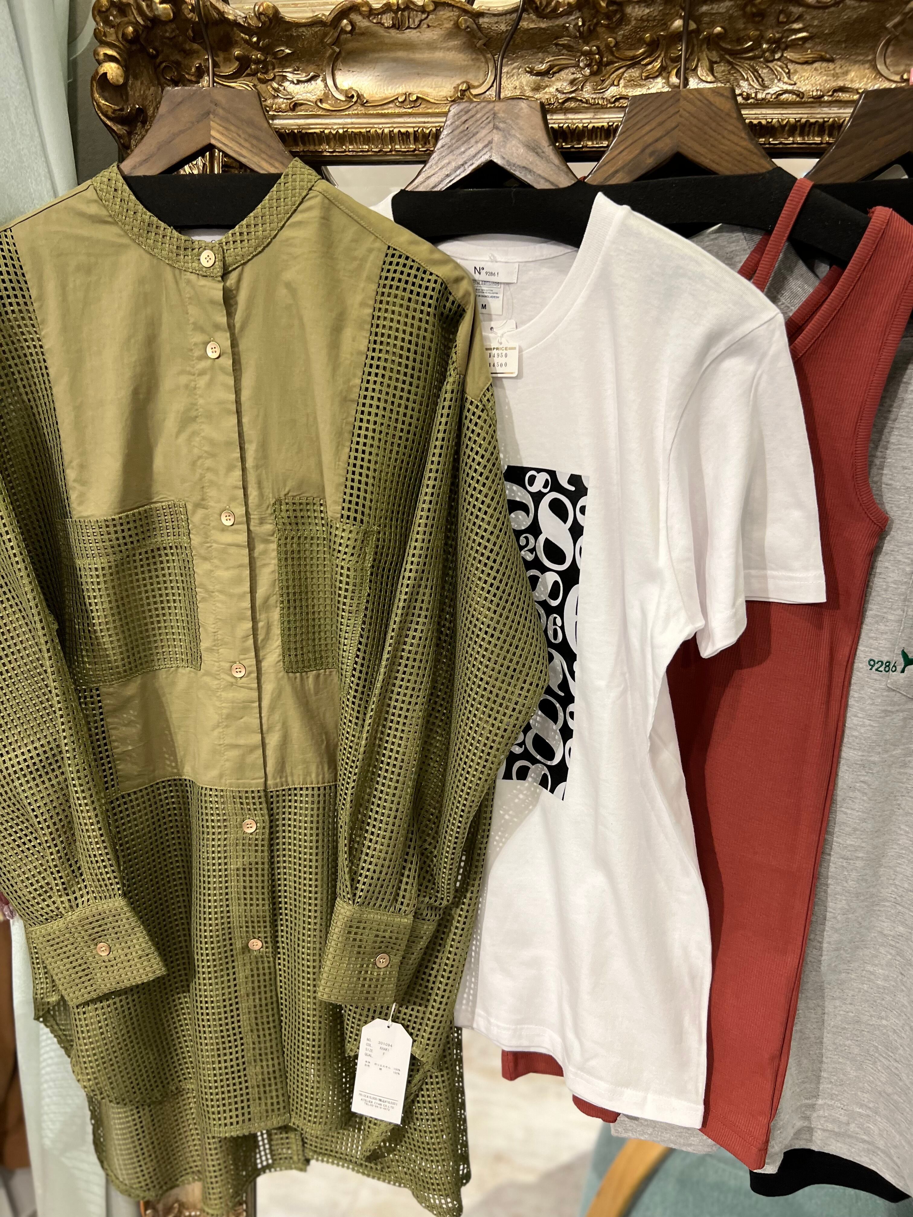 『K・N』様専用《CYAN》バックスリットブラウスカーキ《9286 FL》オリジナルロゴT白、首タンク6レンガ、サーフグリーン刺繍T(L)バックロゴT黒(XL) 合計5点