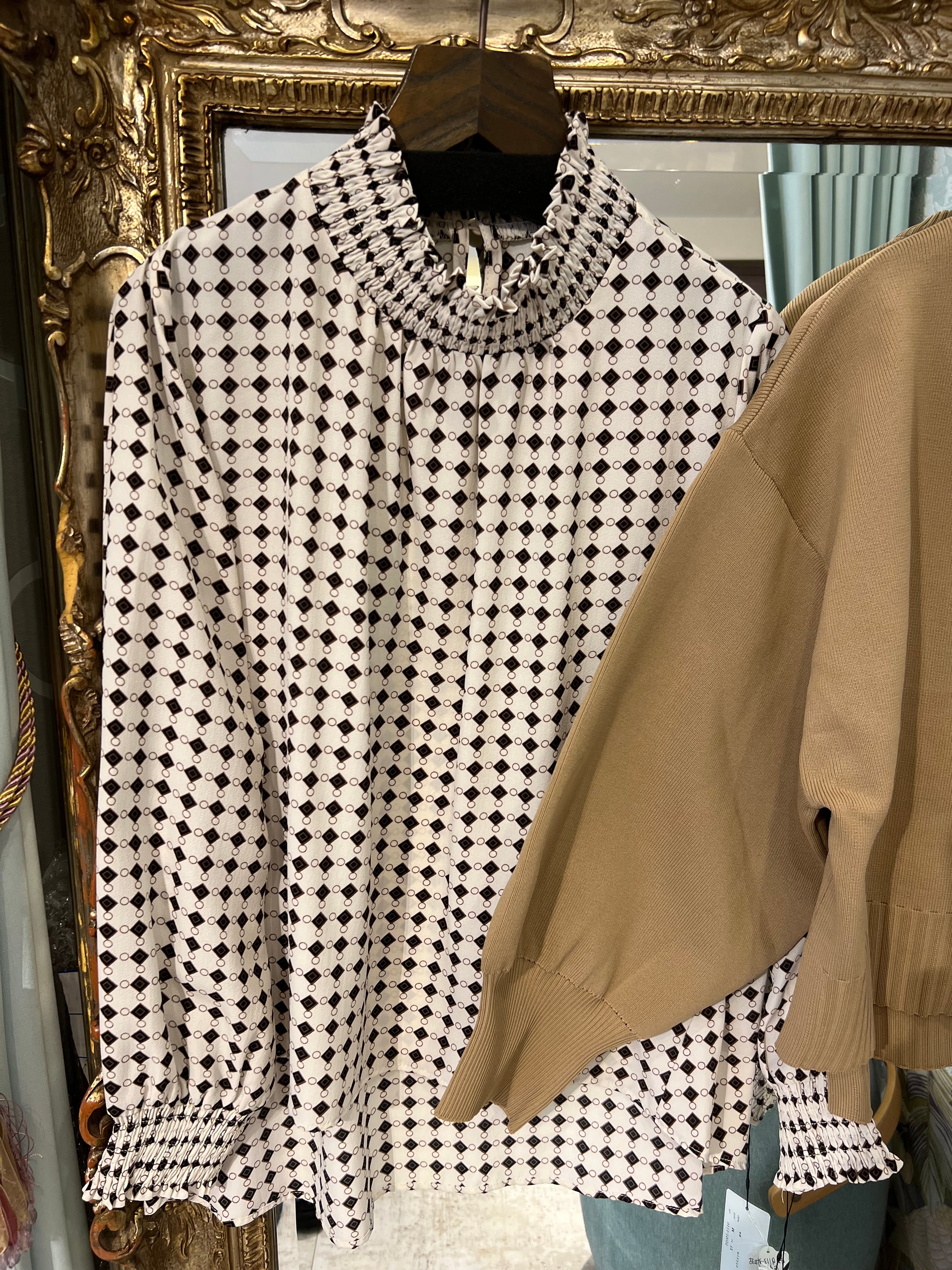 『S・T』様専用《9286FL》ジオメタリック柄ブラウス、9286テープ使いカーデ 合計2点