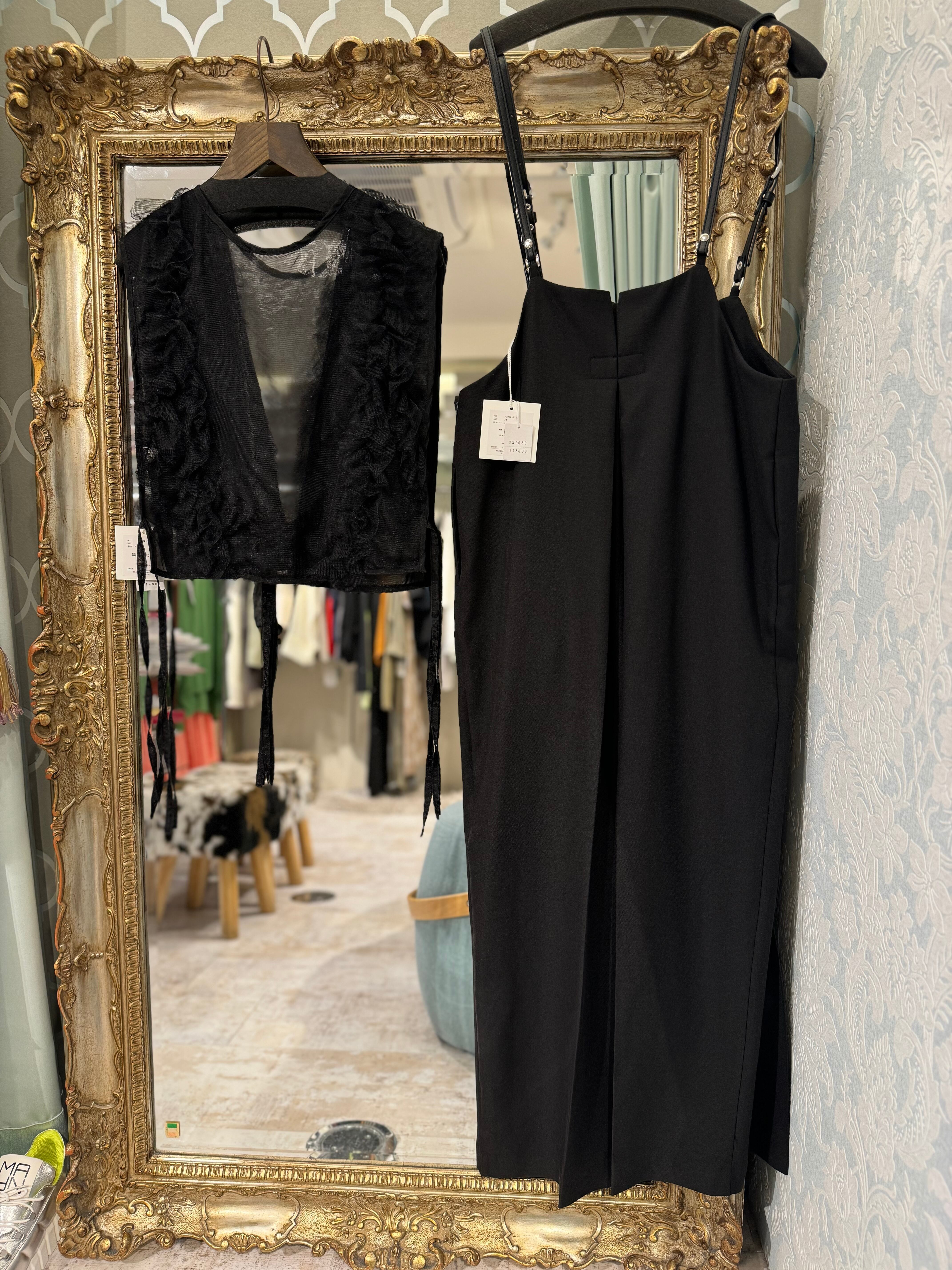 『K・M』様専用《CHIGNON 》フリルチュールベスト黒、サス付きパンツ黒 合計2点