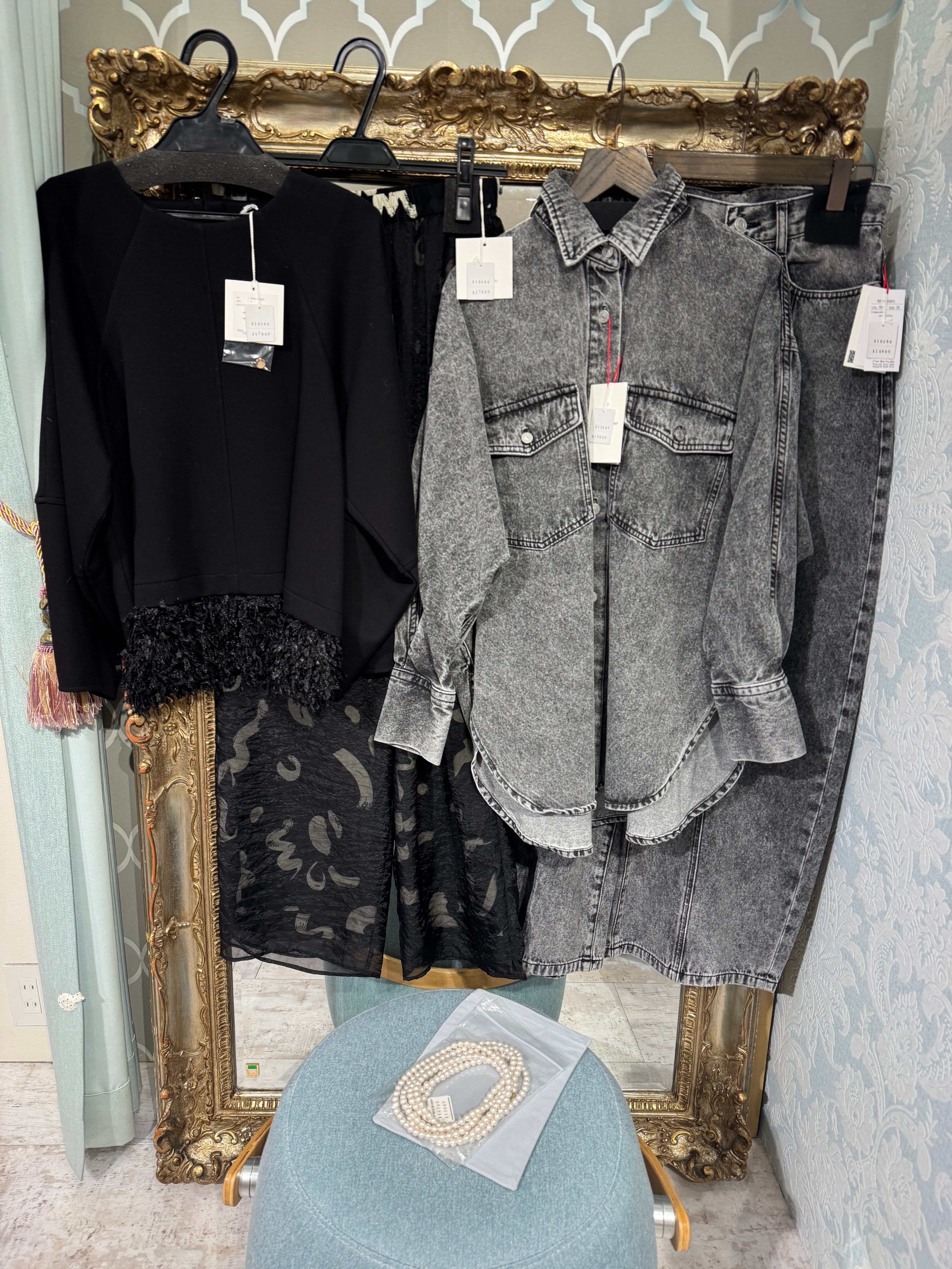 『J・M』様専用 春物ご予約《CHIGNON 》モケモケダンボールPO、シアーレイヤー柄PT 《ディニティコリエ》ドルマンシャツ、カーブパンツ《シーズマーラ》パールネックレス 合計5点