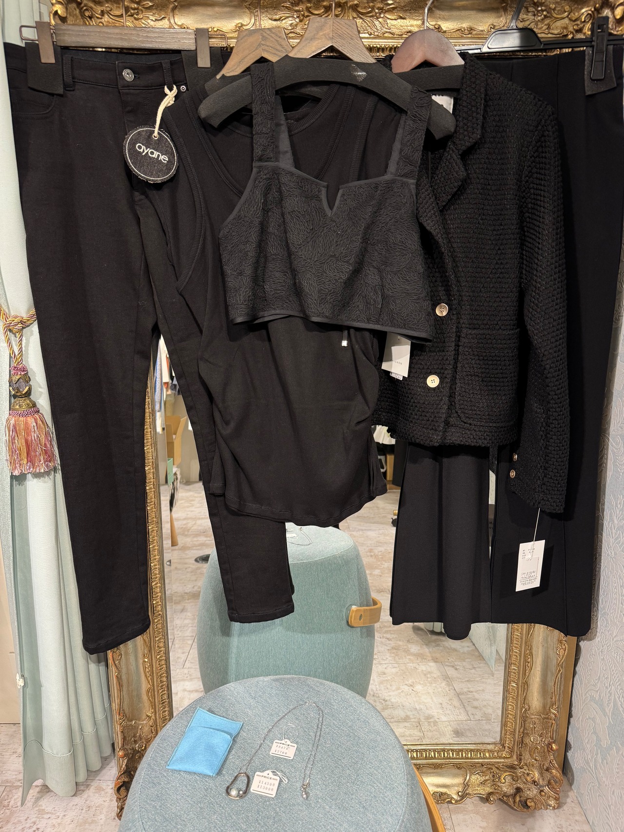 『K・M』様専用《ayane》裏起毛PT40%OFF《CHIGNON 》タンクレイヤーT、刺繍レースビスチェ《CYAN》ワッフルJK《Mewl》フレアパンツ《たおジュエリー》トップと、チェーン 合計7点